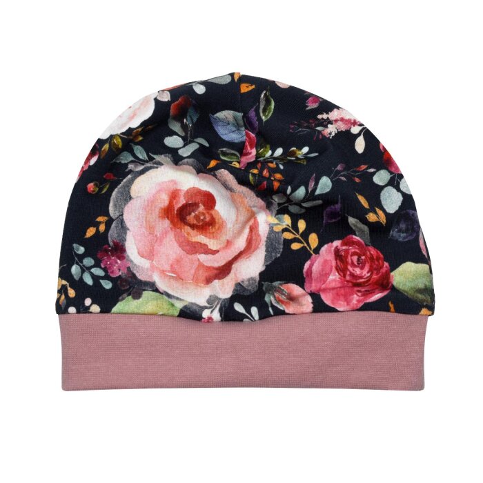 Unsere zauberhafte Bündchenmütze begeistert mit einem traumhaften Blumenmuster in Aquarell Optik auf nachtblauem Hintergrund. Jede Mütze wird in liebevoller Handarbeit aus hochwertigem Baumwolljersey gefertigt, der für seine außergewöhnliche Qualität bekannt ist. Der Stoff ist weich, elastisch und atmungsaktiv, was höchsten Tragekomfort garantiert.